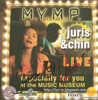 mai, my friend, invited me to watch this concert. at first, i was a bit hesitant since it's at araneta. too far from where i live. but eventually agreed since we haven't seen each other for a long time (chance for us to update each other.. heheh) and she'll be able to accompany me 'til ayala. and that's good enough for me. also, this is the first time that i will see juris and chin perform live and i'm excited coz mymp's one of my fave group. nga pala, mai and family are relatives of juris. she said that we might be able to have a meet and greet with the band after the show. and we did.. woohooo!!! glad i came. overall, the concert is great. sulit!!!! although we weren't able to buy P800 tix coz they were sold out already when they inquired, P600 seats were also good.