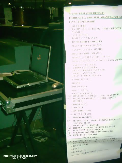 while on our way to mymp's dressing room, we passed by the side of the stage.. here. got a pic of laptop and setlist used in the concert.